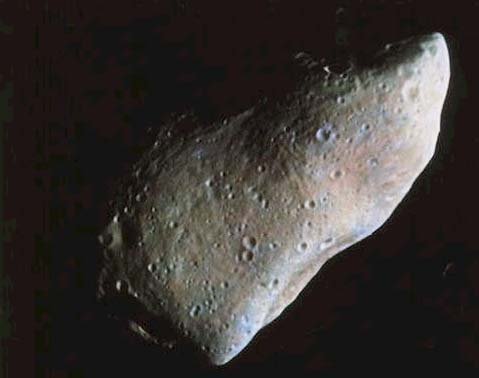 Gaspra is one of the larger asteroids and gained publicity in 1991 when the spacecraft Galileo swung by it on October 29 in a slingshop maneuver to gain energy as a part of its planned Jupiter mission. Referred to as 951 Gaspra, this asteroid is an irregular body with dimensins about 19x12x11 kilometers (12x7.5x7 miles).
