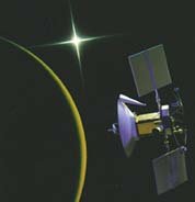 Magellan SpacecraftThe Magellan spacecraft started radar photography of surface of Venus on Sep 15, 1990, using wavelengths in the cm range. It used synthetic aperture radar to reveal details as small as 120 meters across, increasing previous resolution by a factor of 10. The five year Magellan project involved the mapping of the whole surface of Venus, much like Mariner 9 mapped Mars in 1971 and 1972. ![]() NASA image. |
