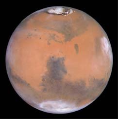 The Red Planet features ice caps of carbon dioxide and water, a volcano 15 miles high (Olympus Mons), a canyon 3,000 miles long and 4 miles deep (the great rift valley, Valles Marinerus), and dry river channels. Many such features were explored in 1971-72 by the Mariner-9 craft. The later Viking landers performed surface tests, looking for evidence of life.