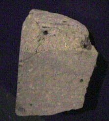 The small section of meteorite at left, identified as having come from Mars, is on display in the Smithsonian Museum of Natural History. The section is about 10 cm across. It was discovered in Victorialand, Australia in 1979.