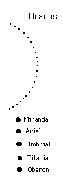 Uranus is the only planet which lies on its side as it revolves around the Sun. Because it is at the limit of naked eye visibility, Uranus was unknown until William Herschel discovered it with a telescope in 1781. The rings were revealed when they occulted a star in 1977.