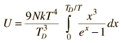 For low temperatures where T<< TD, the exponential in the denominator becomes very large before reaching the limit, implying that the integrand is very small near the upper limit. This makes it plausible to approximate the integral by increasing the limit to infinity to make use of the standard integral
