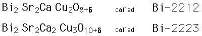 Bismuth Strontium Copper OxidesCommonly referred to in current literature as BSCCO, this ceramic has shown critical temperatures as high as 110 K. A leading candidate for power applications of high-temperature superconductors, it is used in two main forms: ![]() A great deal of effort is currently being put into forming superconducting tapes of these materials by a method called "powder in tube" forming. Tapes over a kilometer long have been made from the Bi-2223 material which will sustain a current density above 10,000 A/cm^2 at 77 K. The Bi-2212 material must be kept below 20K, but is superior at those temperatures.