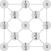 Silicon crystallizes in the same pattern as diamond, in a structure which Ashcroft and Mermin call "two interpenetrating face-centered cubic" primitive lattices. The lines between silicon atoms in the lattice illustration indicate nearest-neighbor bonds. The cube side for silicon is 0.543 nm. Germanium has the same diamond structure with a cell dimension of .566 nm. |