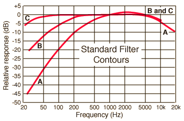 Standard filter contours are used to make the instrument more nearly approximate the normal human ear. The different contours were intended to match the ear at different sound intensities.