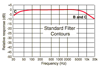 The C-contour does not filter out as much of the lows and highs as the other contours. It approximates the ear at very high sound levels and has been used for traffic noise surveys in noisy areas.