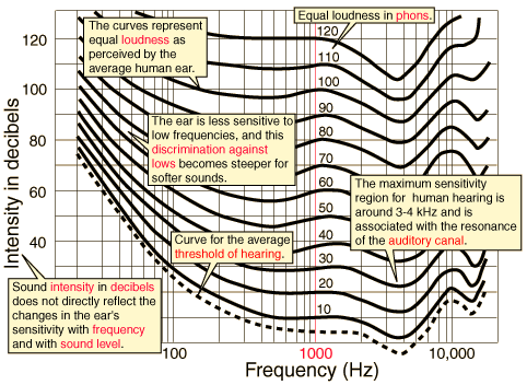 Click on any of the highlighted text for further details about the equal loudness curves.