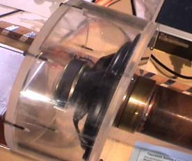 Shown below is more detail on the attachment of the loudspeaker to the pipe. The loudspeaker is driven by the amplified output of a tunable oscillator.