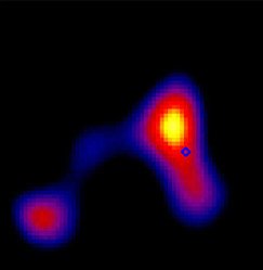 Groombridge 34Groombridge 34 is a binary star system that consists of two red dwarf stars in a nearly circular orbit with a separation of about 147 astronomical units. Both stars in this pair exhibit variability due to random flares, and they have been given variable star designations. (The brighter member Groombridge 34 A is designated GX And, and the other member is designated GQ And).(Wikipedia) Groombridge 34 is located about 11.6 light-years (ly) from our Sun, Sol, in the north central part of (Aab=00:18:22.89+44:01:22.63, B=00:18:25.7+44:01:44:C~, ICRS 2000.0) in Constellation Andromeda, the Chained Maiden -- northwest of the Andromeda galaxy (M 31) and two of its satellite galaxies (M32 and M110). This binary star system was listed by Stephen Groombridge (1755-1834), whose "A Catalog of Circumpolar Stars" was published posthumously in 1838, but its large proper motion was not discovered and measured until 1860. Both visual members of the system are flare stars that have been given the variable star designations GX and GQ Andromedae.(Solstation) Sources: