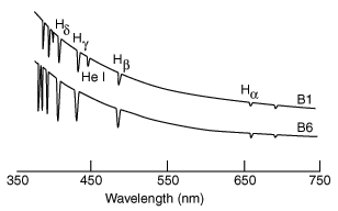 Stars can be classified by their surface temperatures as determined from Wien's Displacement Law, but this poses practical difficulties for distant stars. Spectral characteristics offer a way to classify stars which gives information about temperature in a different way - particular absorption lines can be observed only for a certain range of temperatures because only in that range are the involved atomic energy levels populated. The standard classes are: