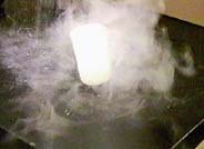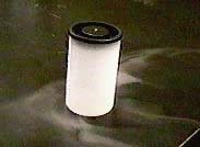 A cold explosion can be produced by placing liquid nitrogen in a film can. Though caution is advised, it seems like harmless fun. The Fuji type film can shown builds up more pressure than the black Kodak can, though both are interesting. The top of the film can hits the ceiling forcefully. |