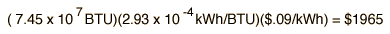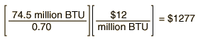Assume natural gas cost of $12 per million BTU in a furnace operating at 70% efficiency.
