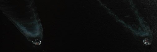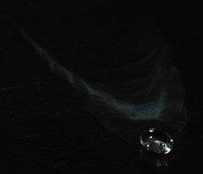 | Droplets on liquid nitrogen on a table top will zip around like tiny hovercraft, suspended on a cushion of nitrogen gas from the rapidly evaporating droplet. The droplets of liquid may also oscillate and rotate rapidly. If placed on a dusty surface, they will pick up dust and carry it with them. |