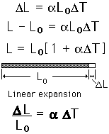Linear ExpansionThe relationship governing the linear expansion of a long thin rod can be reasoned out as follows: ![]()