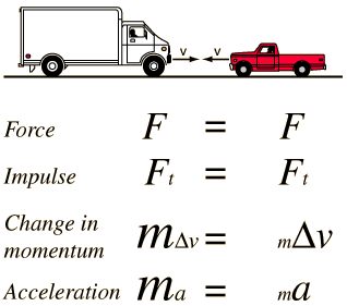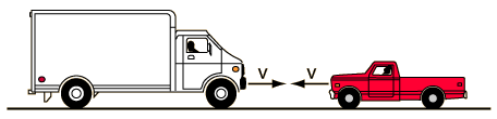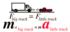 Truck Collision![]() In a head-on collision the forces on the two vehicles are constrained to be the same by Newton's third law. But from both Newton's second law and the work-energy principle it becomes evident that it is safer to be in the bigger truck.