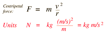 Combinations of units pervade all of physics, and doing some analysis of the units is common practice. For example, in the case of centripetal force, it is not immediately evident that the quantity on the right has the dimensions of force, but it must. Checking it out: