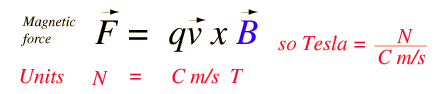 Often the use of dimensional analysis can be helpful as a reminder of what specialized units contain. In the case of the magnetic force on a moving charge, the magnetic field unit is a Tesla. But what is a Tesla? Checking out the force equation can remind you of the combination of basic units that is contained in the unit named a Tesla.