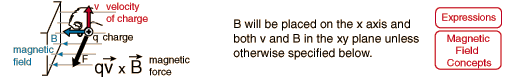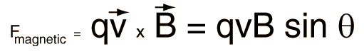 Magnetic Force as a Vector ProductThe magnetic force exerted on a moving charge takes the form of a vector product. You may enter values in any of the boxes below. Then click on the symbol for either the vector product or the angle.