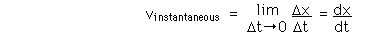 VelocityThe average speed of an object is defined as the distance traveled divided by the time elapsed. Velocity is a vector quantity, and average velocity can be defined as the displacement divided by the time. For the special case of straight line motion in the x direction, the average velocity takes the form: ![]() The units for velocity can be implied from the definition to be meters/second or in general any distance unit over any time unit. You can approach an expression for the instantaneous velocity at any point on the path by taking the limit as the time interval gets smaller and smaller. Such a limiting process is called a derivative and the instantaneous velocity can be defined as ![]()