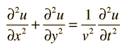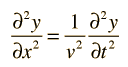 The Wave EquationThe wave equation for a plane wave traveling in the x direction is ![]() where v is the phase velocity of the wave and y represents the variable which is changing as the wave passes. This is the form of the wave equation which applies to a stretched string or a plane electromagnetic wave. The mathematical description of a wave makes use of partial derivatives. In two dimensions, the wave equation takes the form ![]() which could describe a wave on a stretched membrane.
