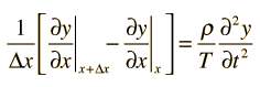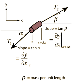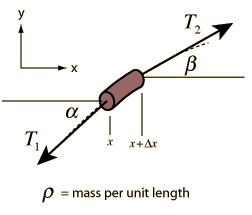 Waves in Ideal StringThe wave equation for a wave in an ideal string can be obtained by applying Newton's 2nd Law to an infinitesmal segment of a string.